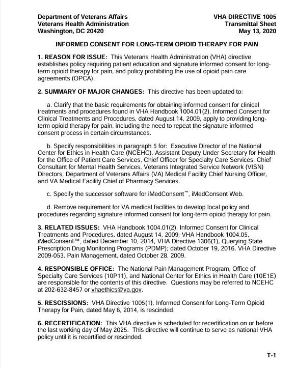24consent on use of opioids, so that veterans may have an informed understanding of the risks and